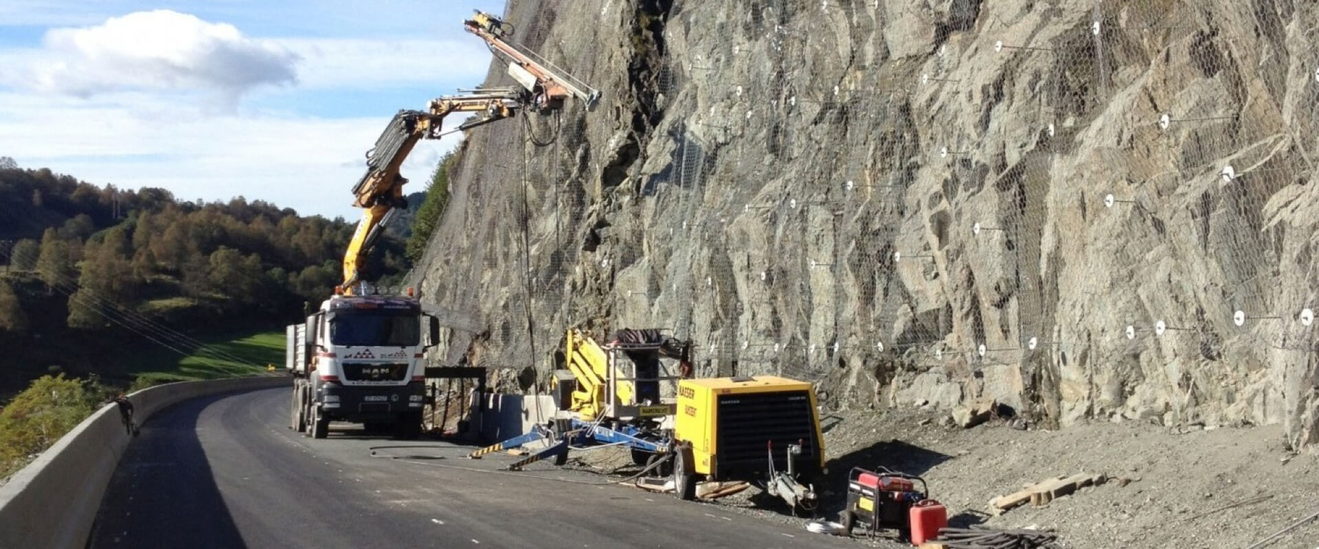Vi er i dag Norges ledende entreprenør innen snøskredsikring med støtteforbygning og har lang erfaring innen stabilitets- og rassikring av skråninger, is- og steinsprangnett mm.