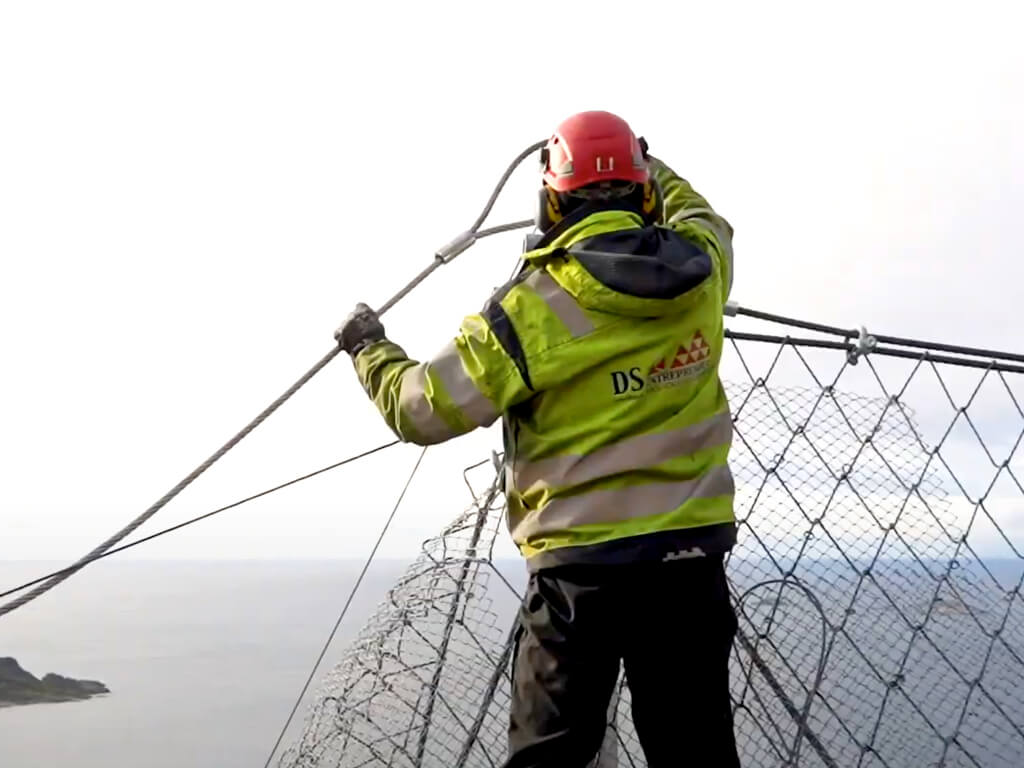 DS Entreprenør AS har bred og lang erfaring innen stabillisering av fjellmasse, rassikring av skråninger, is- og steinsprangnett og stålforbygninger for snøskred.