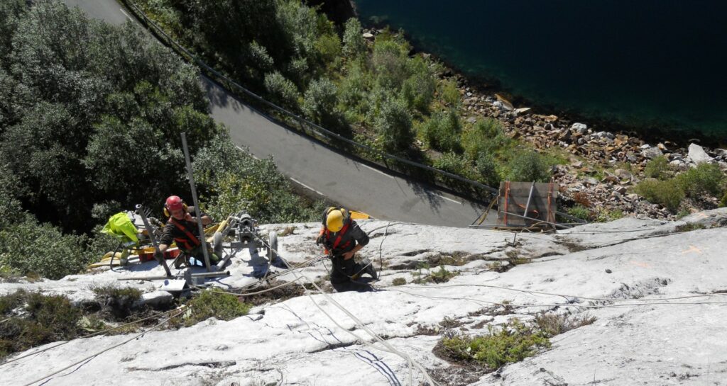 Man gjennomfører da gjerne fjell og vegitasjonsrensk i forkant, før man sikrer løse blokker med bolting.